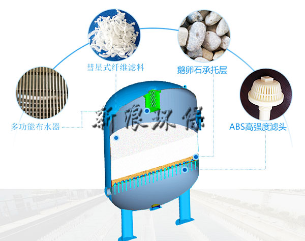彗星纖維過濾器是以彗星式纖維濾料為核心的一種先進的快速深層過濾技術,它既有纖維濾料過濾精度高和截污量大的優點,又具有顆粒濾料反沖洗凈度高和耗水量少的優點,是目前上較先進的深層過濾設備。