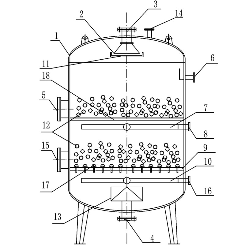 纖維球過濾器還有這自身耗水量低的特點,僅為周期制水量的1-2%,能夠配合攪拌機進行反洗,或者用氣水反洗。