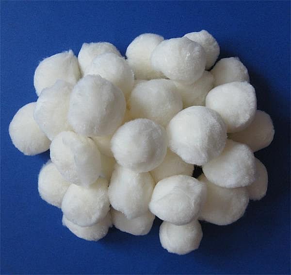 纖維球可以根據需求制作成直徑25mm--80mm不同球徑大小的纖維濾球,其材質可采用滌綸,腈綸,丙綸等不同材質,制作工藝大同小異,把長條的長絲經過梳理分成需要的束粗,結扎,裁剪,成型。
