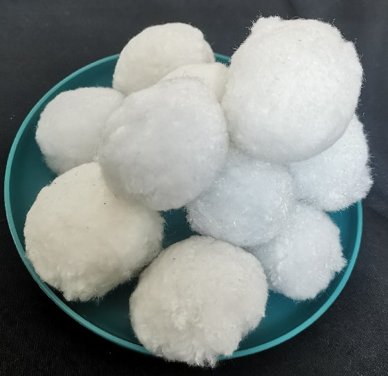 纖維球濾料與傳統的鋼性顆粒濾料相比,纖維球濾料具有彈性效果好、無浮面、孔徑大、水頭損失小、耐酸堿、可再生等優點。在過濾過程中,濾層間隙沿水流方向逐漸減小,過濾速度快,截污能力大。適用于過濾設備的直接過濾。用于電力、油田、化工、冶金、電子等行業的高標準用水,以及循環水、側濾水、廢水的回收利用。纖維球選用高醛維綸和定型聚酯纖維為原料,大量附著在廢水表面的生物基團與氧氣、污水反復接觸,降解廢水中的懸浮物和有機物。纖維長絲漂浮在水中,使填料之間的空隙變大,不易被生物膜堵塞。比表面積大,活性強,處理效果好。